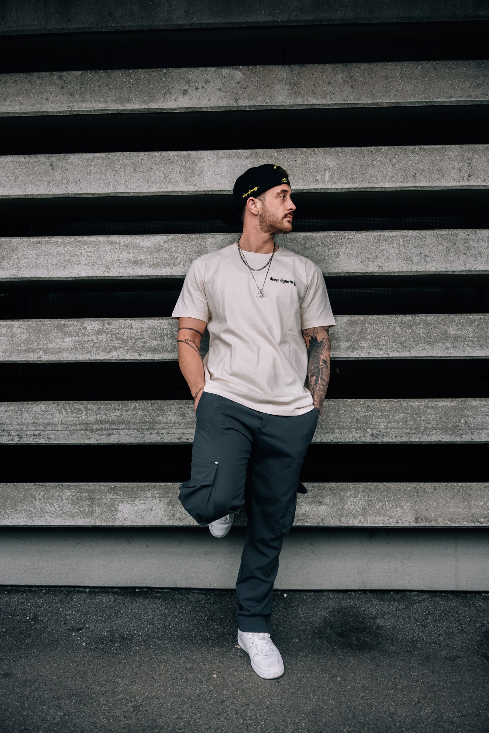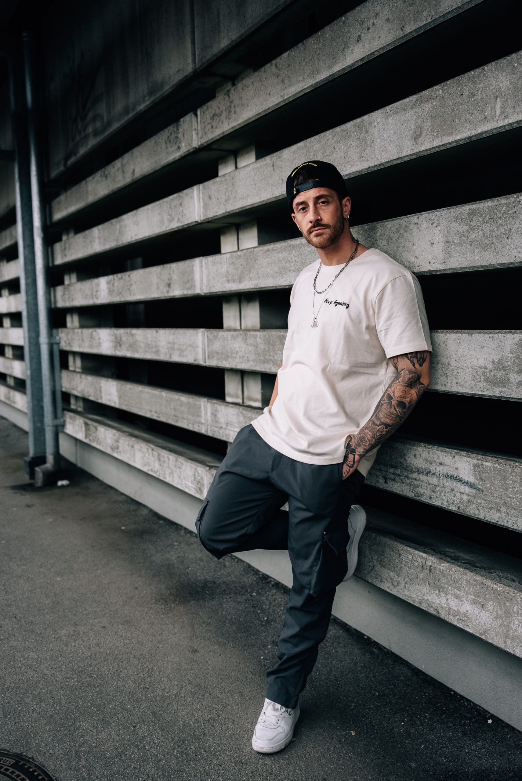 Das männliche Model ist 1,78 Meter groß und trägt Größe XL