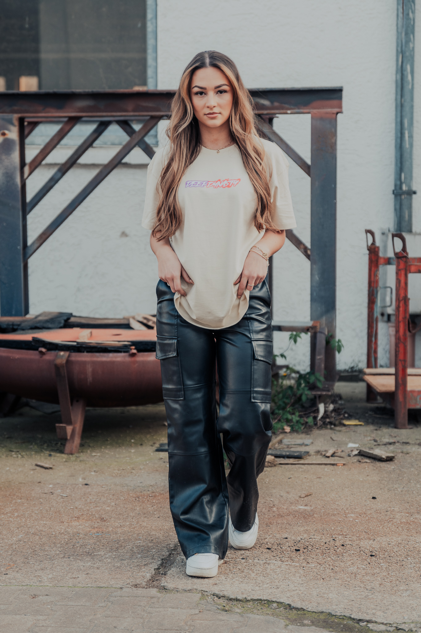 Das weibliche Model ist 1,68 Meter groß und trägt Größe S.